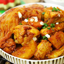 Korean spicy cabbage stewed with chicken nuggets