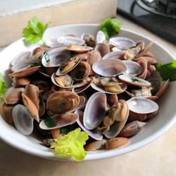 1.Hot water in the pot , pour the shells into the pot, boil over high heat until the shells open (helps to wash out the sand)