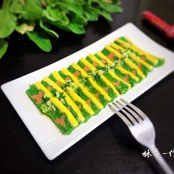9. Scatter the egg yolks and pour it on top of the steamed spinach protein puree