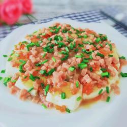 How to make steamed tofu with luncheon meat
