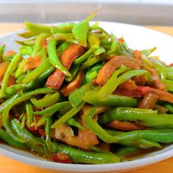 1.The main ingredients are: cut kidney beans into strips with a diagonal knife, cut pork skin into strips, cut dried fragrant seeds into strips, and cut green onions into sections.