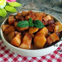1. Cut the pork belly into cubes, peel and wash the potatoes.