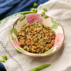 Except for chopping the pepper into pieces, which is a bit of a test of patience, it is really simple to make.I specially added a little more salted egg yolk, and the satisfaction is self-evident.Every bite of spicy shredded silk is mixed with the salty aroma of salted egg yolk~