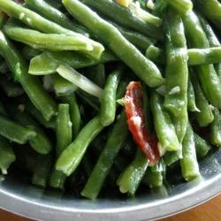 10.Add the sausage and stir-fry for twenty seconds, then add the green beans and stir-fry!