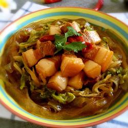 11. After the meat is stewed for about an hour, add shredded cabbage and add salt to taste.