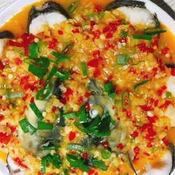 10.Take it out of the pot and pour it on the steamed grass carp.Garnish with green onions and serve!