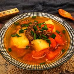 9.Add potatoes and beef brisket and stir-fry for one minute.