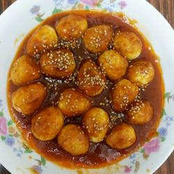 5. Place quail eggs on a plate and sprinkle with a handful of cooked eggs Sesame, this sweet and sour delicacy is complete.Thanks for attention.