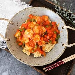 7. Stir-fry evenly so that each shrimp is coated with tomato sauce.