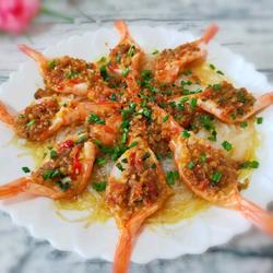 11. When the time is up, take out the shrimp plate and sprinkle with chopped green onion, and heat another tablespoon in the pot oil, pour it on the surface of the chopped green onions while it's still hot.