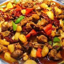 Pour hot oil into the pot, add onions, ginger, garlic, dried chili peppers, and chili sauce and saute until fragrant.Pour in the chicken and stir-fry evenly.Add a small amount of water to cover the chicken, and simmer over medium heat for 10-15 minutes.