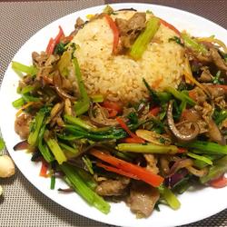 7.Pour on the vegetables and enjoy the delicious black pepper beef rice bowl