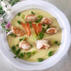 7. Steam until 5 When the egg liquid has solidified, add the shrimp and steam for another three minutes