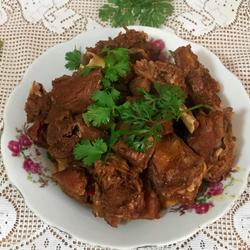 7.Put in the washed mutton, add oyster sauce, dark soy sauce, and rock sugar and stir-fry for a while