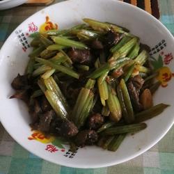 5. Put in the celery and fry it for a while.Because the celery is not cooked well, I put in a little water and the frying effect is very good, just like thickening!