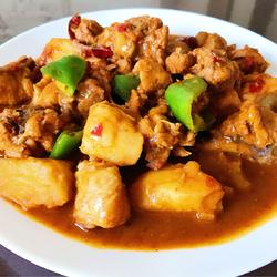 8. Add potato cubes and meat and stew together.After half an hour, add green pepper to match before serving.Serve out!