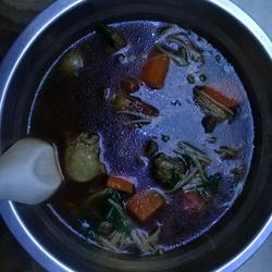 4. After 10 minutes of stewing, add the enoki mushrooms and simmer for another 5 minutes.It’s out of the pot