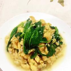 9.The delicious scrambled eggs with pea tips is completed, enjoy it slowly