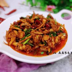 4. Heat the oil in a pan, add onion slices, dried red pepper, ginger and garlic and saute until fragrant