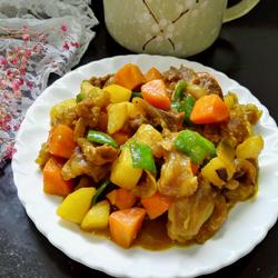 4. Heat the oil in the pot and add the chopped potatoes and diced carrots