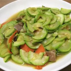 Pour in the melon and carrot slices, add appropriate amount of sugar and salt, stir-fry over high heat for about 2 minutes (8 minutes cooked), then pour in a little rice vinegar, continue to stir-fry over high heat until the vegetables are cooked.
