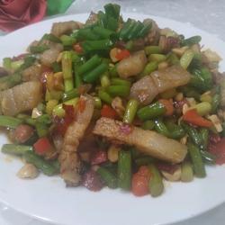 How to stir-fry pork belly with garlic sprouts and peanuts