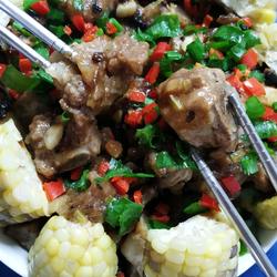 9. Take out the stir-fried ginger, garlic and tempeh and put them into the ribs (oil Reserve for later use), add green onion, appropriate amount of oyster sauce, sugar and pepper, mix well and marinate for fifteen minutes, finally add cornstarch and mix well.