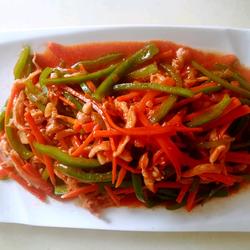 1. Wash green peppers and carrots Cut into shreds.Pour into boiling water and blanch until cooked, remove and set aside (put a small amount of salt in the water)