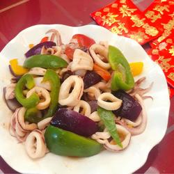 How to stir-fry fresh squid with colored pepper