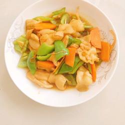 3. Stir-fry the carrot segments and green pepper segments, (you can add water Starch thickening)