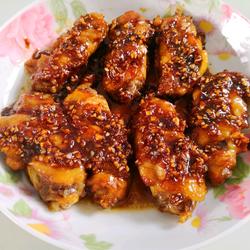 8. After frying, take the chicken wings out to a plate and add the sauce in the oil.Scoop it out and pour it on the chicken wings, it’s ready to eat