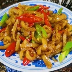 3.Take out the cooked pork rinds, cut into thin strips and set aside