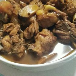 White chicken ( half ) | Peanut oil, dark soy sauce, star anise, Sichuan peppercorns, ginger, scallions ( 10 Sichuan peppercorns, 2 star anise, appropriate amounts of others ) |