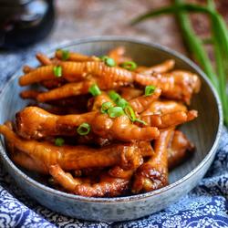 6.Add oil to the pot and add rock sugar.The rock sugar will become darker in color as it boils.Add the chicken feet into the pot and stir-fry evenly