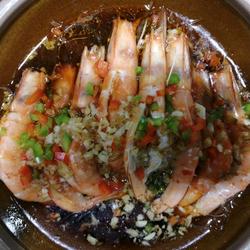 4.Place the prawns, add broth and steamed fish soy sauce, and steam for 8 minutes
