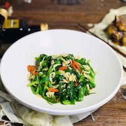 6. Add the shrimp and wolfberry, stir-fry evenly until the flavor is absorbed