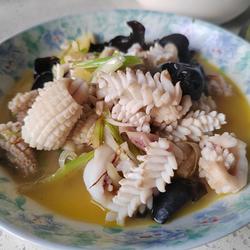 1. Prepare the materials.Remember to wash the squid rolls, cut them with a flower knife, and blanch them until cooked.