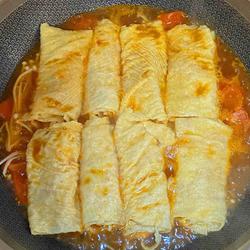 8.Pour on the prepared sauce juice and cook for 7 minutes