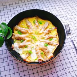 20.When the egg liquid solidifies, sprinkle in a little chopped green onion.