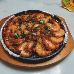 13. It feels like there is no water on the iron plate, and you can smell the aroma of garlic., it’s successful when the shrimps turn red! Be careful! It's hot!