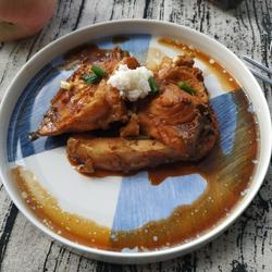 1.Put the ginger slices into the pot and put the washed herring pieces into the pot
