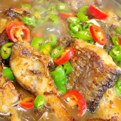 3. Heat oil in a pan, add fish pieces and fry until golden brown on both sides.