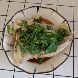 8.Put on the coriander, green onion, and drizzle with a little steamed fish soy sauce.
