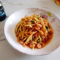 1.Peel and shred the wild rice and prepare the shrimps good.