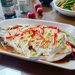 3. After the water is boiled, add the fish, put some ginger slices on the steaming plate, and fish body Brush with a little peanut oil, cover the pot and steam over high heat for 10-15 minutes.
