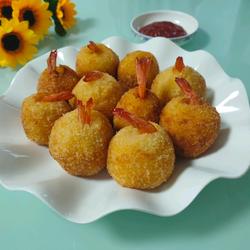Use one egg liquid in two places , put half in the potato and shrimp mashed, and use half to wrap the shrimp balls in the egg liquid.If you don’t have dumpling flour, you can use ordinary flour.You can add salt to the potato and shrimp mashed, or not.It depends on whether the salted egg yolk is salty.If it is salty, don’t add it.Yes, you can fry it in a small pot, so you don’t need too much oil.Keep the heat low throughout, be careful not to burn it, and use tomato sauce according to your preference.