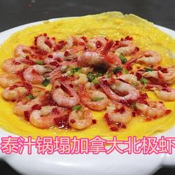 10. Cover the pot and it will be ready to serve in about 30 seconds.plate.Pour in Thai sauce and sprinkle with chopped green onion, and this Canadian Arctic shrimp in Thai sauce is ready.The Thai sauce is sour and spicy, the shrimp meat is fresh and sweet, and the eggs are soft and tender.