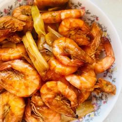 5.Put in the shrimp over high heat, stir-fry until it changes color slightly, add salt, sugar, and cooking wine and stir-fry evenly