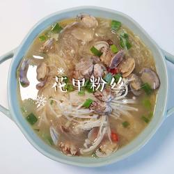 3.Put in the enoki mushrooms, vermicelli, flower shells, and water, and cook