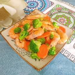 1.Picture of the finished product of stir-fried shrimp with broccoli and carrot